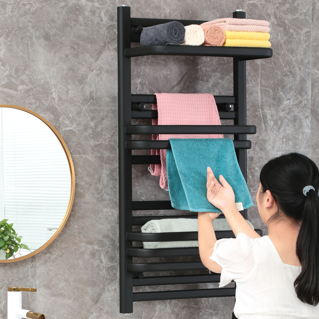 传统的毛巾晾晒方式往往需要占用较大的空间,如在浴室门口、浴缸边缘或专门的晾衣绳上悬挂毛巾。而电热毛巾架可以安装在卫生间墙壁上,或者放置在角落里,不占用地面空间。其多杆设计还能同时挂放多条毛巾,满足一家人日常使用的需求。而且,电热毛巾架的外观通常简洁大方,能够与各种装修风格相融合,为你的卫生间增添一份精致感。