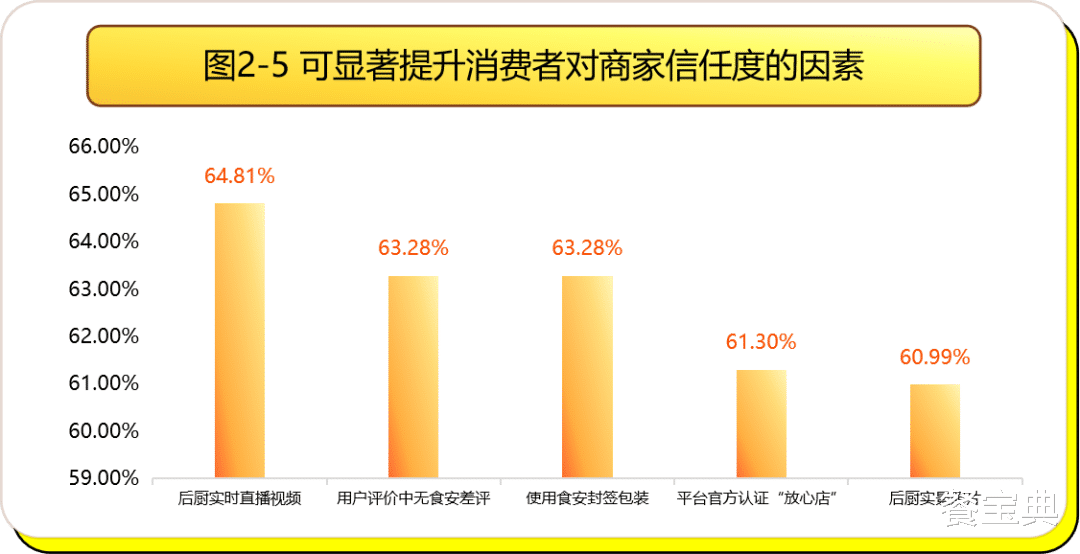 除了实时直播,“用户评价无食品安全差评”和“食安封签”也获得了超过63%消费者的认可,成为建立信任的重要基石。这些举措共同构成了一套可视化的信任体系,让消费者点得更放心。
