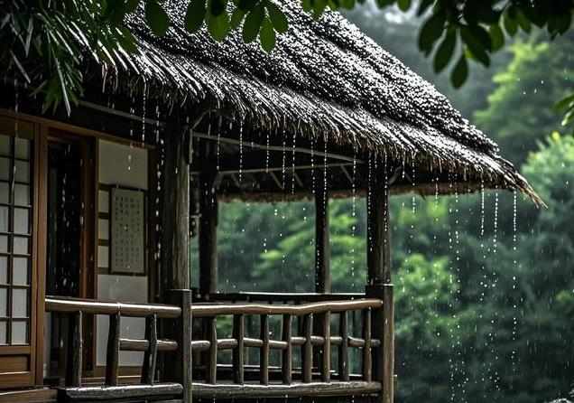 杜甫的茅草屋无法抵挡恶劣的天气,下雨刮风的时候,茅草被风刮得四处乱飞,屋子开始漏雨,随着雨下得越来越大,屋子里的积水也越来越多,以至于双脚只能一直踩在水中。