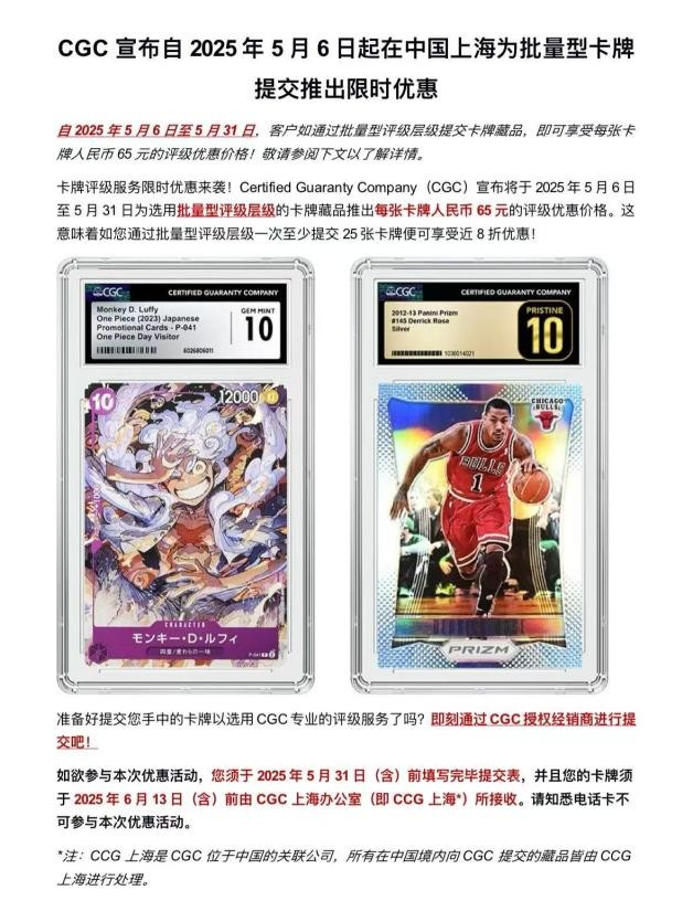 同时,商家在CGC活动期间内送评CGC Bulk档位将获得49元/张(评级)+16元/张(签字)的优惠价格,欢迎感兴趣的卡友前来咨询。