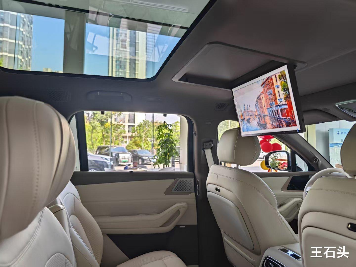 而且三排座椅全是电动的,能切换好几种模式,比如“前排大床模式”,瞬间变成星空大床房;或者“四人舒享模式”,秒变家庭影院。