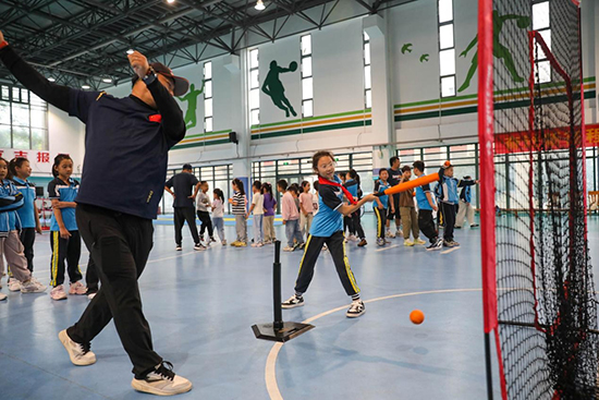 仪征市实验小学东区校一直将体育视为素质教育的重要基石。学校2023年正式组建校棒垒球体育训练队,由3名专业体育老师担任教练。学校体育老师陈刚介绍,训练队成立之初,学校就制定了“基础体能+专项技能”双轨训练计划,利用课后服务与周末时段开展系统训练。训练队带动全校3000余名学生参与日常体育锻炼,真正实现以体育人、以练育人的目标。本次活动中,中国垒球协会还向仪征市实验小学东区校赠送了软式棒垒球器材,未来,希望这些充满活力的器材能成为校园里的 “运动伙伴”,让更多孩子有机会参与软式棒垒球运动,让这项运动成为校园体育文化的重要组成部分。