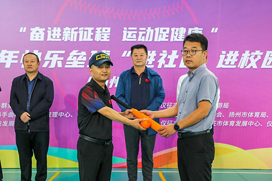 中国垒球协会新闻宣传委员会主任、华奥星空科技发展有限公司总编辑刘向前,中国垒球协会理事、江苏省棒垒球运动协会常务副会长兼秘书长严小平,扬州市体育局四级调研员张义勇,仪征市文体广电和旅游局党委委员、总工程师周晓辉,扬州市棒垒球运动协会副会长韩超,仪征市实验小学东区校分管领导王德勇共同出席启动仪式并为活动开球,张义勇宣布活动启动。