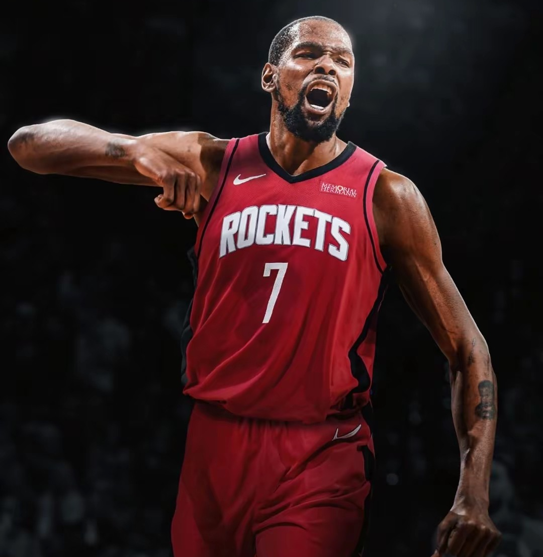 杜兰特在经历了失败的篮网、太阳旅程以后,今年7月加盟火箭队。