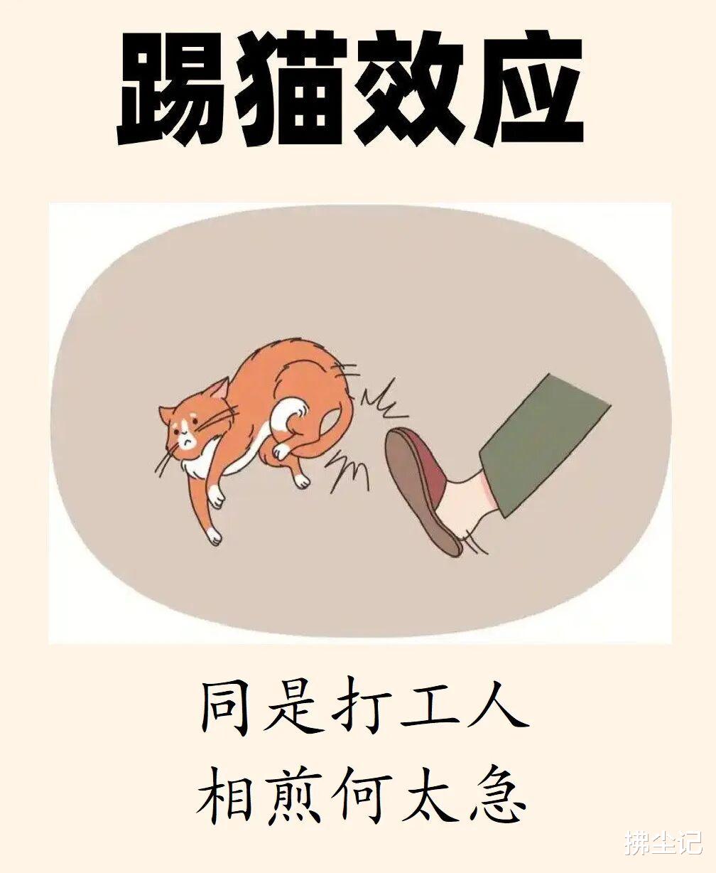老板骂了餐馆老板,餐馆老板转头对后厨师傅甩脸色,他把怒气撒在配菜的学徒身上,最后学徒只能对着案板上的青菜出气——最弱小的“猫”,成了情绪的最终承受者。