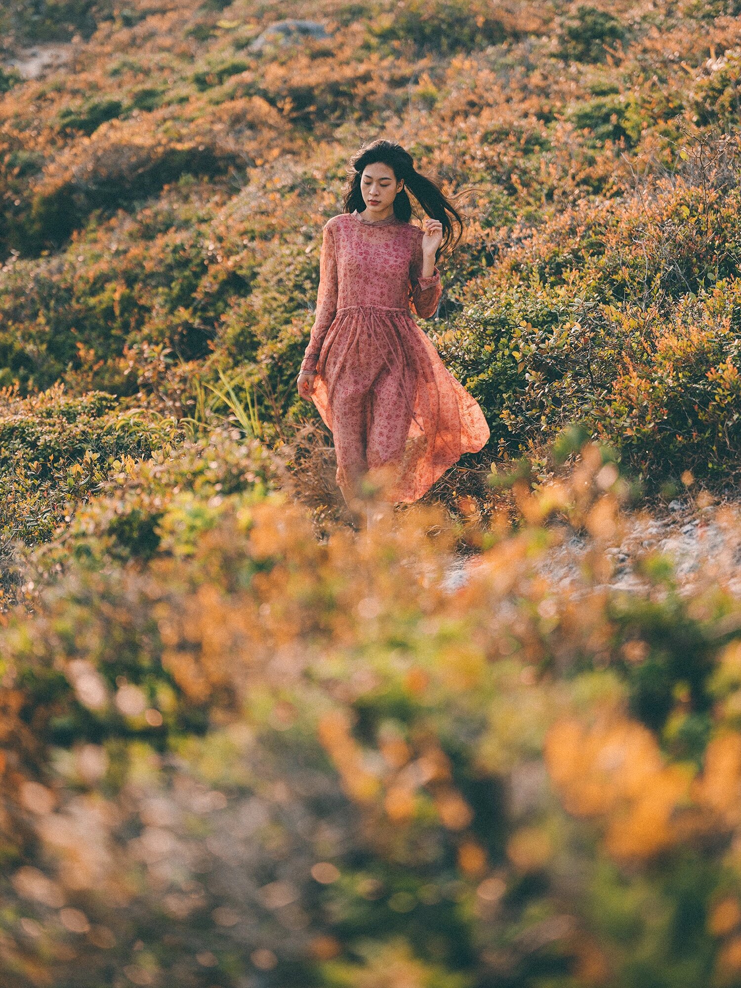 一般我们创作人像,喜欢先看太阳的位置,然后将人物置于逆光或侧逆的位置,这样就能拿到比较通透的画面,因为有光线参与,色彩才会更加明丽,环境中的元素都有光感的存在。