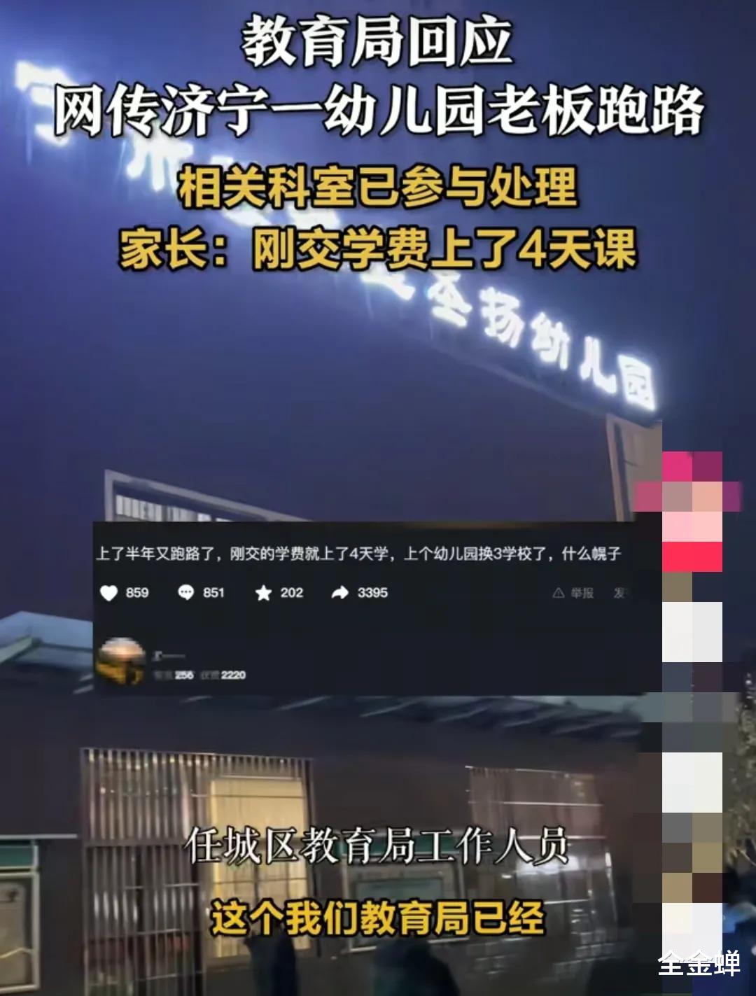 网传一幼儿园老板跑路了,位于济宁,家长说刚交完钱上了四天课,园长就跑了。对此家长们也是愤愤不平,开始投诉。