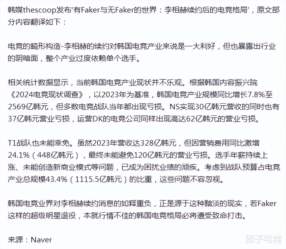 近期韩媒thescoop发布‘有Faker与无Faker的世界:李相赫续约后的电竞格局’