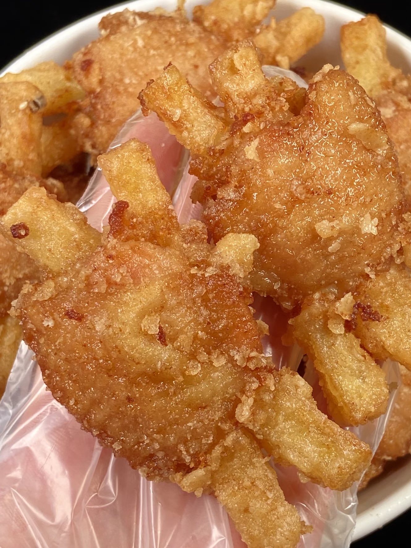 然后,取一张锡纸或烘焙纸,将调好味的鸡翅肉和土豆条放在纸上,卷起来,两端拧紧,形成卷状。在卷好的鸡翅卷上均匀地裹上一层淀粉,这样炸制时更容易形成酥脆的外皮。