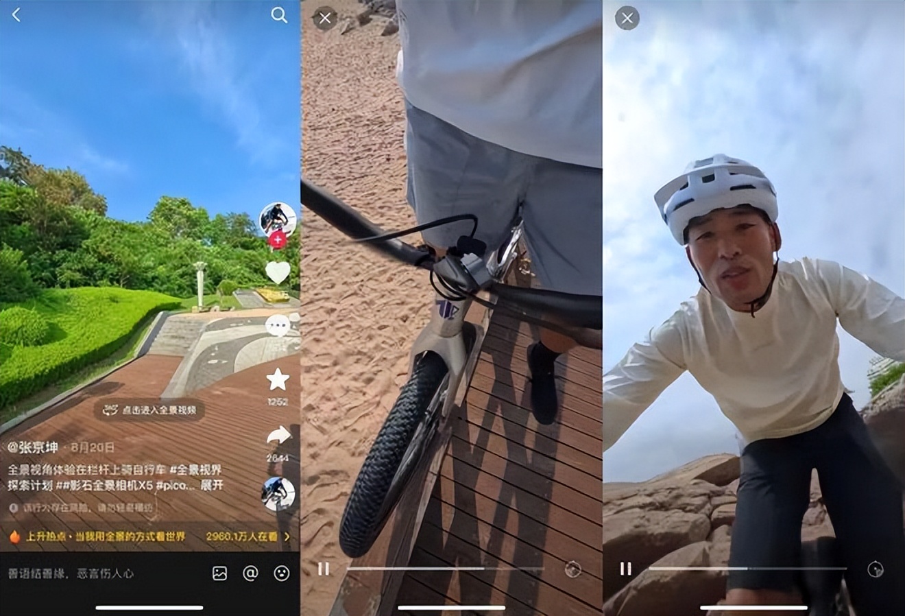 某种程度上,张京坤的愿望已经实现了一部分,他现在几乎每周都会在抖音分享影石360 X5拍摄的骑车全景视频,而沉浸式体验栏杆平衡、岩石速降这些高难度动作,也已经成了粉丝们的日常。