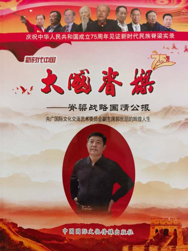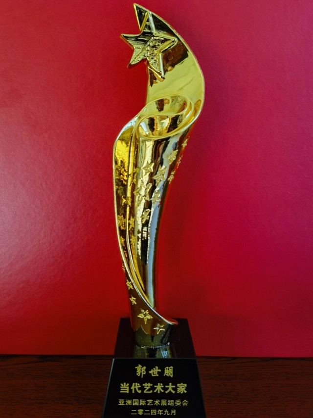 郭世朋: 男,六二年生于河北廊坊大城,中国共产党员。现为央广国际文化交流艺术委员会副主席,CHlNACCTV·NEWS签约艺术家,中央国家机关书法家协会会员,中央新影中学生频道艺术之旅栏目艺术顾问,央媒文化艺术顾问,博鳌亚洲艺术人才研究中心研究员、副秘书长,世界非物质文化遗产研究院特邀院士,中国楹联学会会员,中国书画家联谊会新文艺群体书画家工作委员会委员。中宣盛世国际书画院会员,国际名人百科主席。中国书法艺术首届金马奖、中俄友谊艺术展金奖、国际毕加索艺术绘画大赛金奖、艺术中的诺贝尔奖获得者。亚洲书画界十大新闻人物。在2024年度相继被授予《国家文艺泰斗丰碑奖》、《中华文化国际形象大使》、《国务外交礼品师》等荣誉称号。2025年春节应邀参加《天南地北大联欢》春晚的录制,同年二月被授予《两会重点推荐艺术家》中华艺圣荣誉称号。