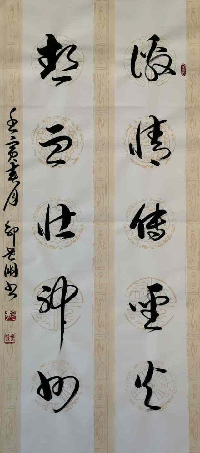 现在看来,郭世朋的书法不仅有技艺功底也有悦目大众的文化熏陶力。雅俗共赏的书法风格,让书法作品可居庙堂之高,有非常好的收藏价值,也可以怡百姓之心,有可颂可誉的文化普及效能!从书法形体上来说,郭世朋是一位诸书皆成,博涉多优的书法全能手。笔墨运行相当滑畅,必得其形,亦得其神绝不生涩!这种挥洒自如的书法体验,就是磨砺的结果,也是书性超人的加持!如果仅有磨砺,没有书性超人的滋养,可以写到精湛,但不绝对不会像他这样写出自立面目的新精彩!