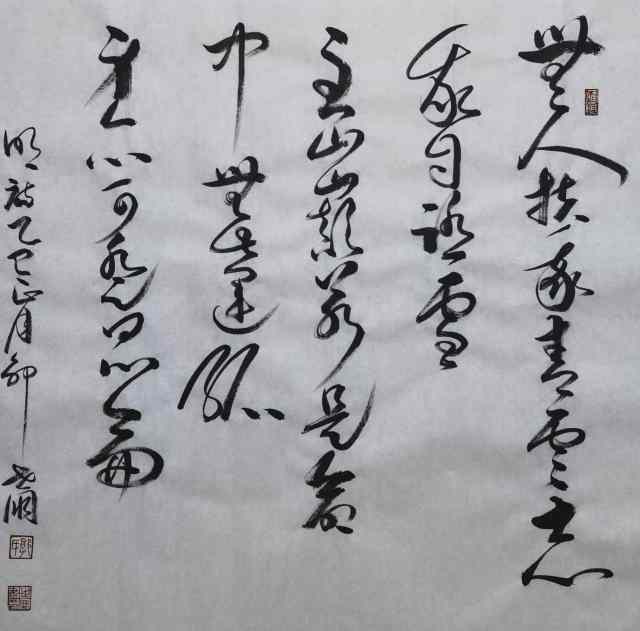 今观郭世朋先生书法,是谓深合于人品佳德,方能做出如此高妙翰墨。其书能于疏淡中见文气,又能于飘逸中见淡泊,具癫张而不显浮躁,具狂素而不具浮滑。实乃脱俗致雅也。书艺爽朗,风骨奇绝。以风骨神气为笔,以遒健致雅为墨,笔墨相承,意韵相加。