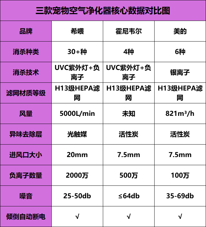 本次测评到这里。选购别只看功能和低价,先选有宠物场景研发和参数透明的品牌,如希喂。再按户型面积、预算与维护成本取舍。避开改标机,才能稳定处理浮毛异味和细菌,让家里空气更干净。