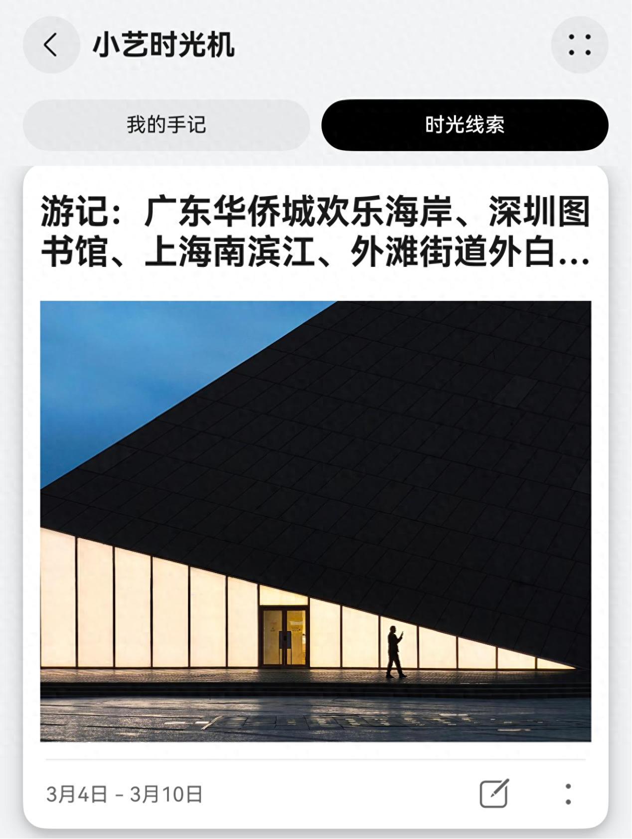 但前几天出差回来后,新换的华为Pura 80手机里,一个叫“小艺时光机”的Agent,让我对刚结束的奔波有了新的审视——小艺时光机Agent自动生成了一则“游记”时光线索,时间跨度正好是我出差那几天。