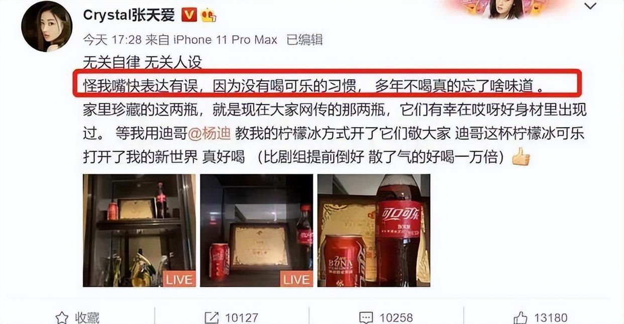 但这个说法很快就被网友戳穿了,有人发现,之前拍到她运动时,旁边就放着一瓶已经喝过的可乐。