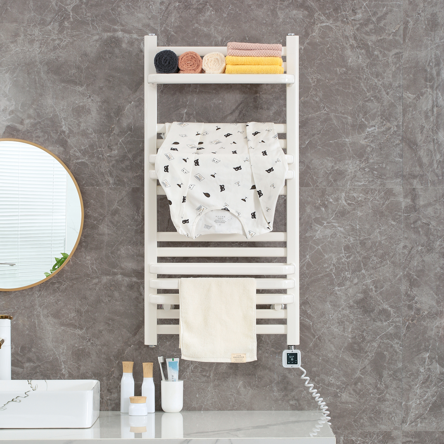 它不像传统毛巾架只能 “被动晾毛巾”,而是能主动发热,把温暖渗透到每一根纤维里。早上起床,伸手就能摸到热乎乎的毛巾,擦脸时仿佛裹着一团小暖阳,瞬间驱散清晨的困意和寒意;洗完澡后,湿漉漉的浴巾挂上去,不用等半天,几个小时就能烘干,而且烘干后的毛巾松软又蓬松,还带着淡淡的暖意,再也不用将就用 “半干毛巾”。