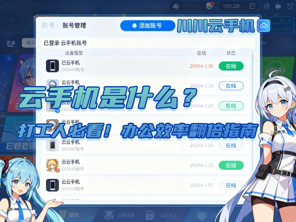 “云手机是什么?”——简单说,它是一台运行在云端的虚拟安卓手机,通过网络远程操控,无需ROOT本机就能获得高权限环境。对打工人而言,云手机=24小时在线的副屏助手:挂应用、多开账号、后台自动化操作都不伤本机,尤其适合需要高效处理消息、管理多个社媒或电商账号的职场人。
