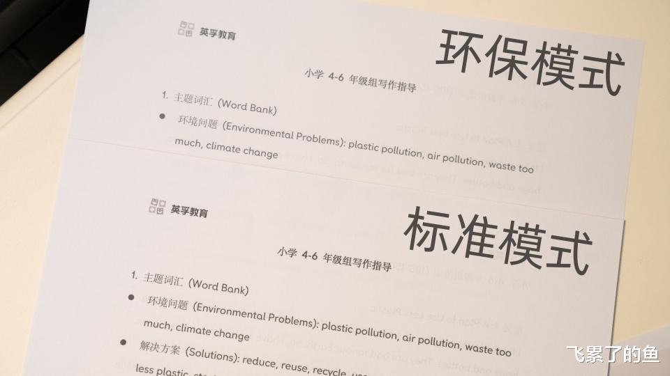 从实际效果看,环保模式虽然字体颜色略浅,但并不会影响查看和阅读,所以,日常用来打印孩子学习资料、作业等内容在合适不过了,既满足需求看得清,还进一步降低了成本,一举两得。