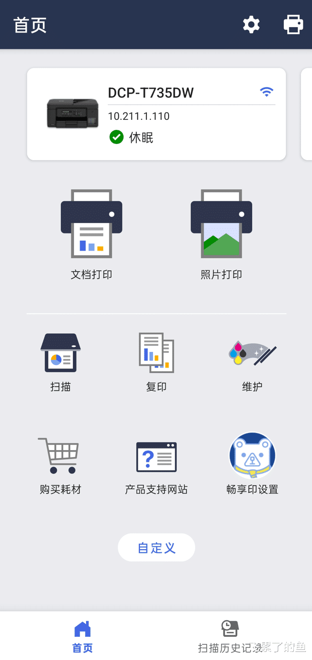 兄弟打印机的APP叫Mobile Connect,功能很全面,文档打印、照片打印、扫描、复印以及维护一应俱全,一站式搞定。APP是有优缺点的,优点就是稳定,缺点是不能云打印,日常可以把app打印作为一个备用方案。