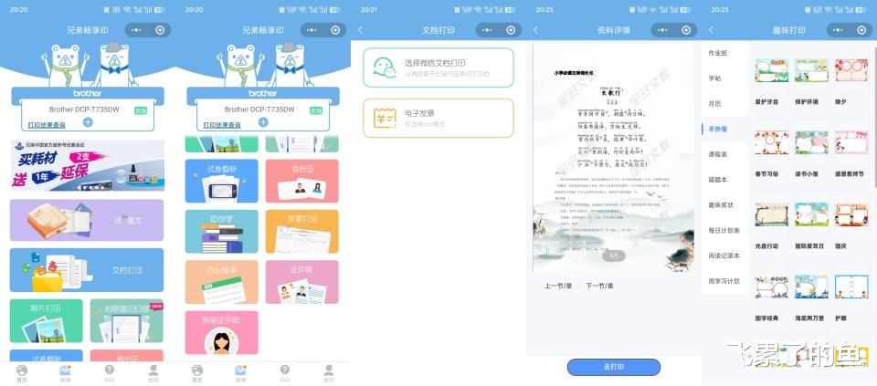 除了基本的打印功能,“兄弟畅享印”还有丰富的学习资料及各种主题模板,再也不用为做手抄报啥的犯愁了,对我们这种家里有小学娃和学龄前娃的家庭来说,可太实用了。