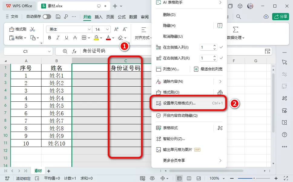2.右键单击,选择"设置单元格格式"。