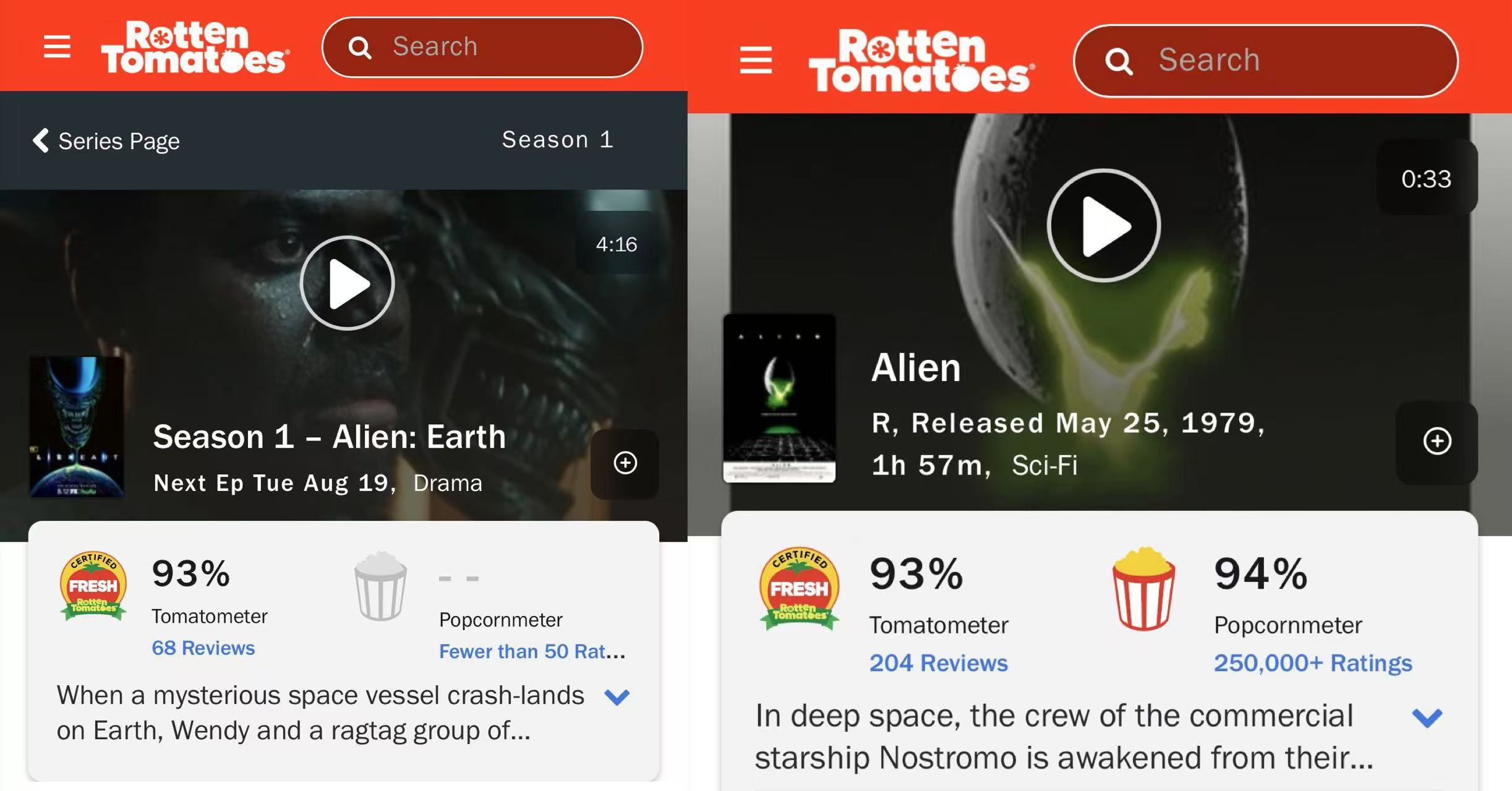 第一季共8集,每集时长约1小时左右。目前烂番茄新鲜度93%🍅,口碑与电影《异形1》持平!!