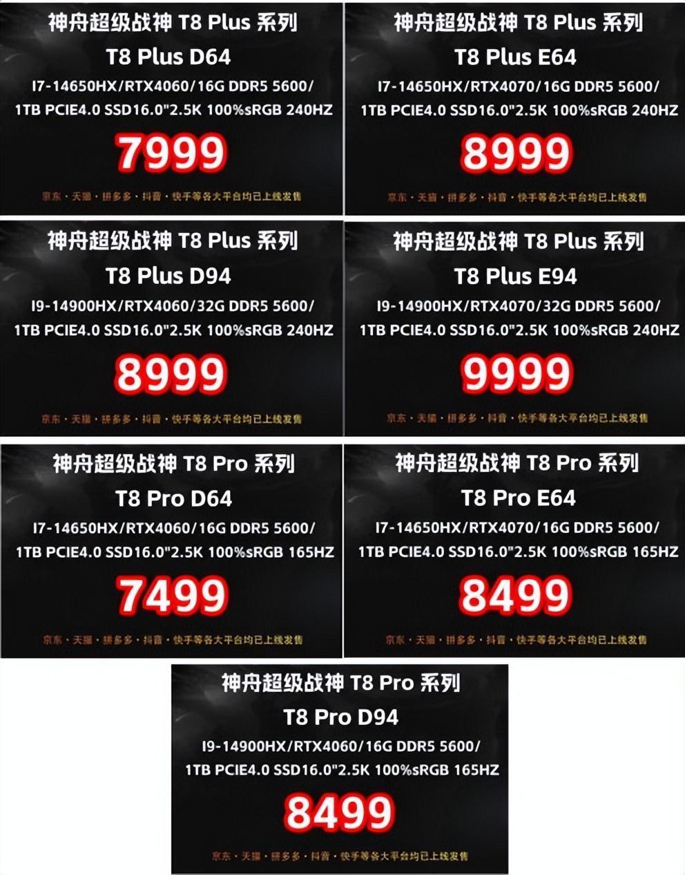 价格方面,神舟电脑同样为消费者带来了惊喜。神舟战神T8 Pro D64搭载i7-14650HX+RTX4060的配置,售价仅为7499元,而搭载i9-14900HX+RTX4070的神舟战神T8 Plus E94的售价也仅为9999元。这样的高性能配置与亲民的价格,使得神舟新品AI本在同类产品中独树一帜,成为性价比极高的选择。神舟电脑的这一创新举措,不仅展示了其在AI技术领域的强大实力,更为整个行业树立了新的标杆。随着高算力AI本的普及,我们有理由相信,未来将会有更多消费者能够体验到AI技术带来的便利和升级。