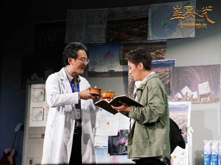 《华夏之光·文明的烛火》自2024年于中国科学技术馆首演以来,凭借独特的叙事视角与沉浸式舞台表现,广受社会各界好评。剧目以北宋1054年“天关客星”观测记录与当代高能天文学中“标准烛光”——蟹状星云的研究为主线,构建了一场跨越千年的科学对话。剧中,北宋科学家苏颂、司天监官员杨惟德与当代“拉索”科研团队展开精神联动,生动展现了中国古代天文学的卓越成就、当代科技的自立自强,以及科学精神的赓续传承。