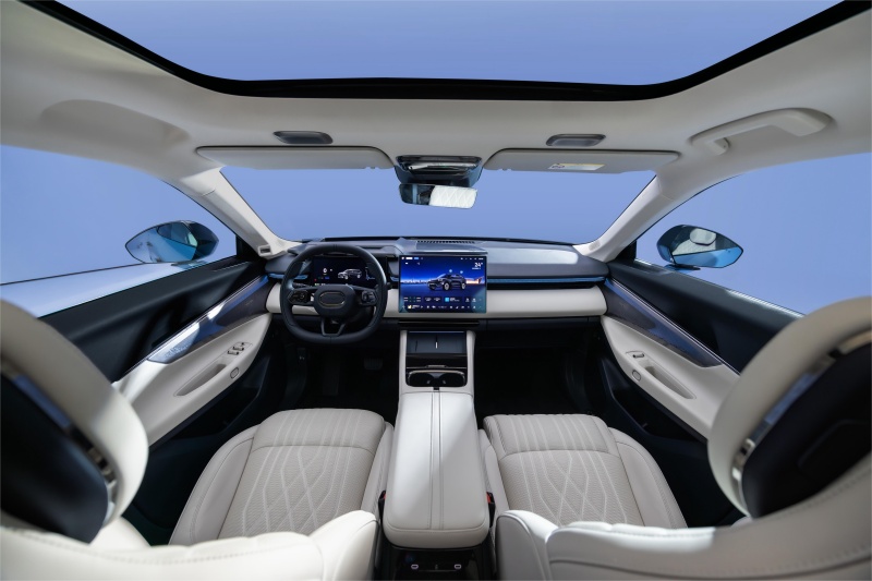新车长宽高尺寸分别为4825/1915/1660mm,轴距2848mm。得益于1.8㎡流光穹顶全景天幕,前排头部空间提升至1026mm,后排头部空间达1021mm,后排纵向空间接近1300mm,可供身高110cm的儿童直立行走。车内设有35处储物空间,后备厢常规容积545L,后排座椅放倒后可扩展至1277L,无论日常出行还是户外郊游都能满足多种装载需求。
