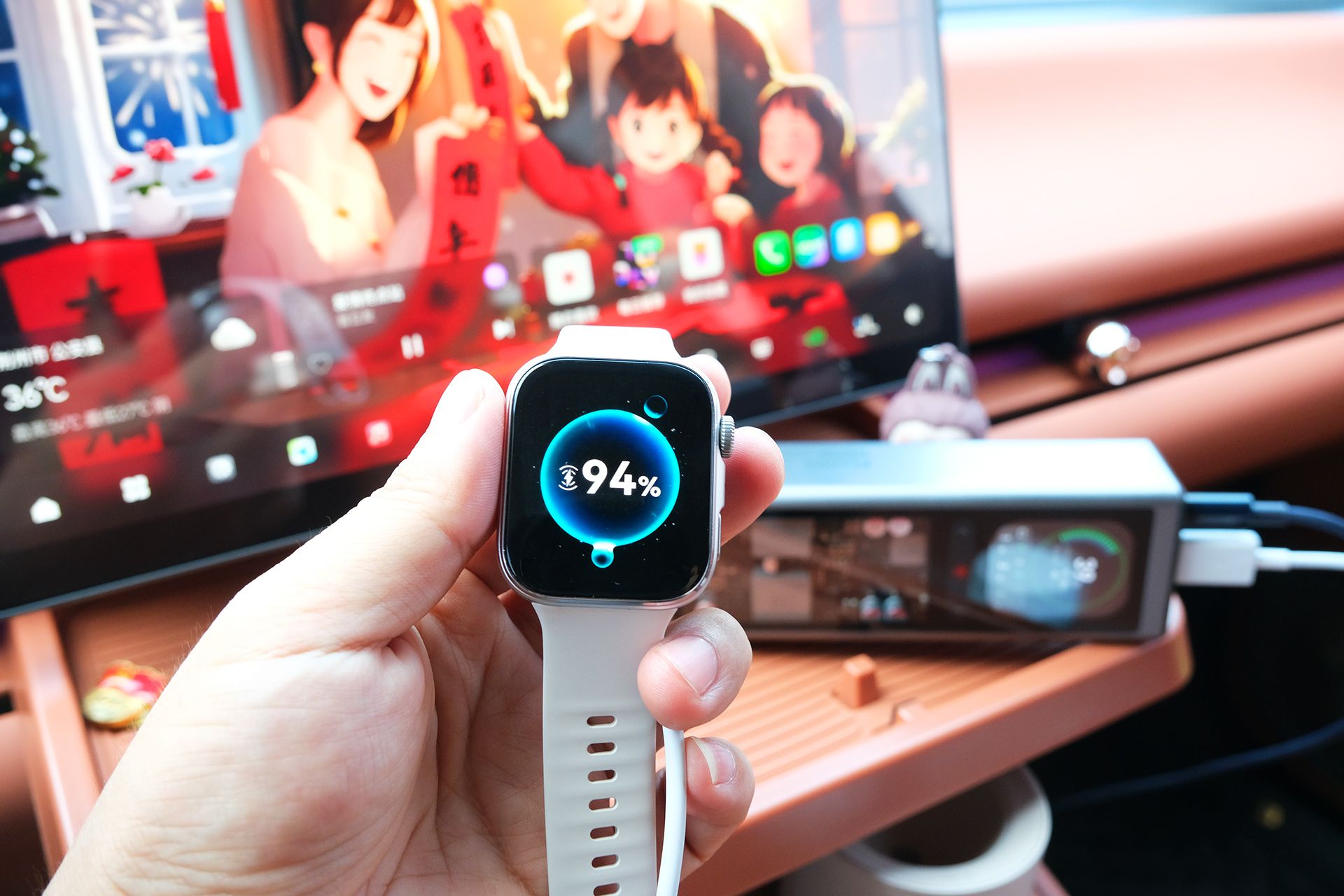 这种组合彻底摆脱了车内线缆缠绕的混乱,尤其适合需要长时间导航或接送乘客时频繁使用设备的场景。20000mAh的超大容量意味着即使连续多日为手机和手表补电,也无需担心电量耗尽,仿佛在车内安置了一个专属的“随行能量站”,极大提升了出行途中的便捷性与实用性。