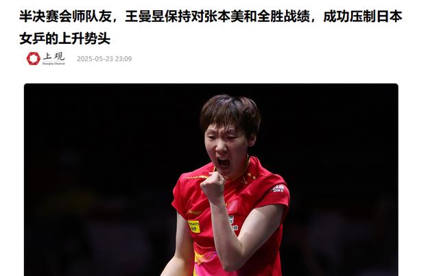半决赛会师队友,王曼昱保持对张本美和全胜战绩,成功压制日本女乒的上升势头