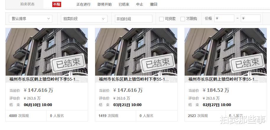 近日,在福州市司法拍卖市场上,一栋位于福州市长乐区鹤上镇岱岭村下李55-1号的私人楼迎来了第三次被拍卖的最后时刻竞拍,起拍价只要147.616万元,最终在长达60天的拍卖周期里,还是没有吸引一个人报名竞拍,拍卖遭遇第三次流拍。