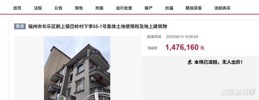 前几天,在福州市司法拍卖市场上,一栋位于福州市长乐区的私人别墅被拍卖,150万起,最终拍出了300.5万元高价。说300.5万元是高价,因为别墅属于福州长乐区农村宅基地建设的私人别墅,土地不用钱,只能本村人买,外人没有资格买的。农村别墅都要300万元,确实不低。不过到了6月10日,同样是在福州市长乐区的农村别墅,另外一栋更加豪华的独栋别墅被拍卖,就没有什么人想要了,出现了完全不一样的结果。