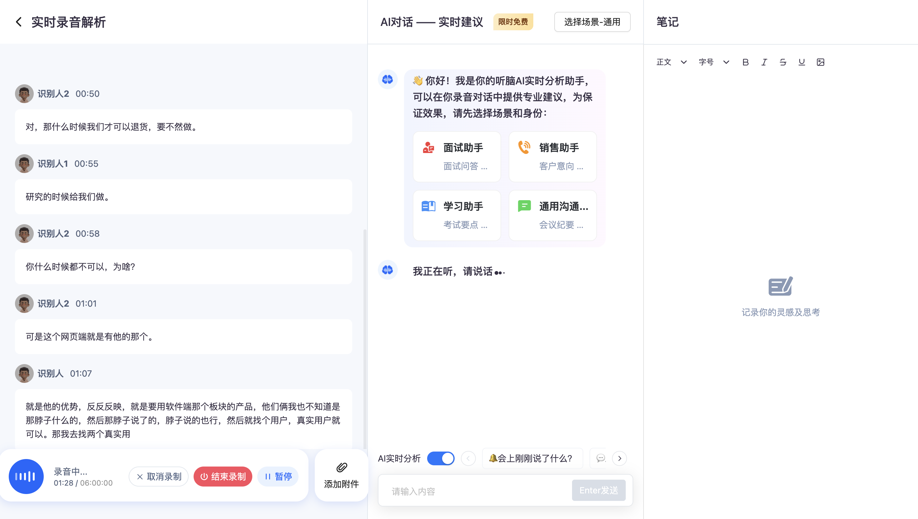 初次使用时,最直接的感受是操作流程较为简单。朋友之前提到,行业分析会中常涉及“宏观经济”“权益类资产”等专业术语,手动整理耗时且容易出错。这类工具通常只需上传录音、选择会议类型,系统即可自动区分发言人并提取重点内容。朋友试用后反馈,生成的内容结构清晰,连“资管新规过渡期”这类表述也能准确识别。