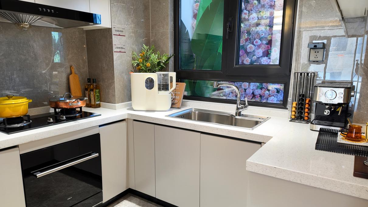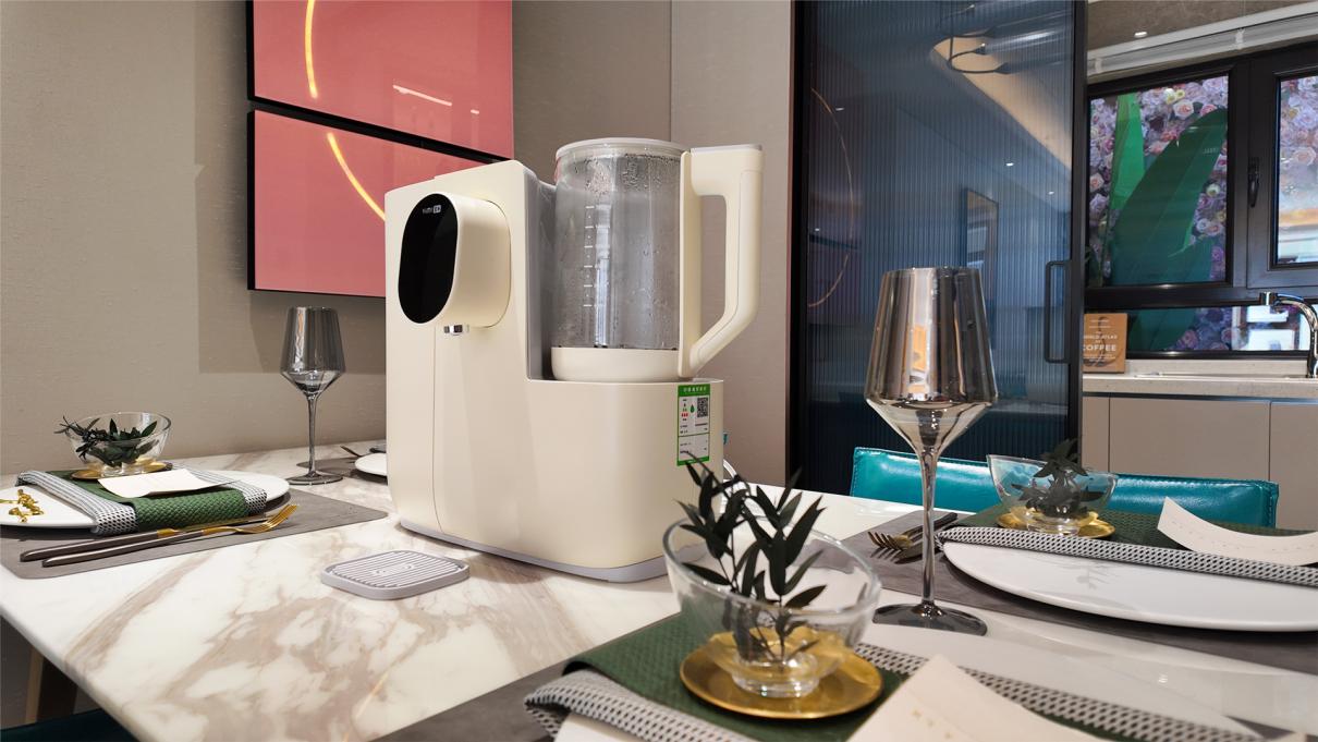 宜米RO熟水即热净饮机的体积比传统净饮机更小巧,前后只有后26公分宽,放在厨台、餐边柜甚至茶几上都不太占空间,对于租房族来说十分友好。奶白色拼接机身也很简洁,再加上精致的做工,摆在家里丝毫没有违和感。