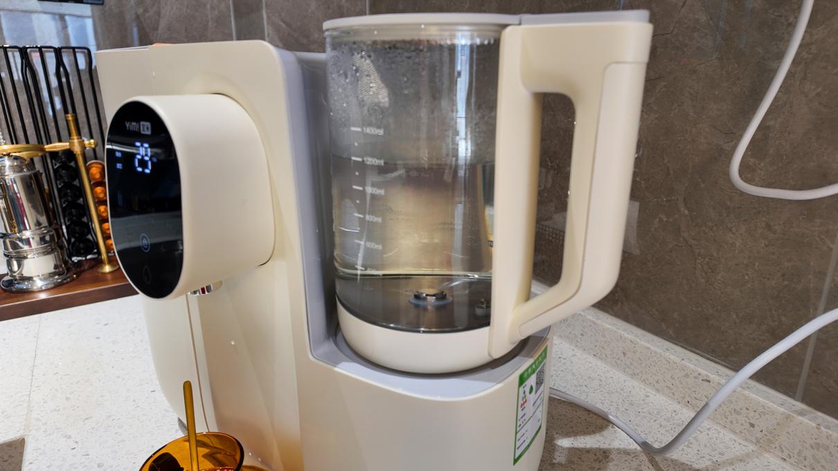 以往用的即热饮水机都存在温度不够、水烧不开的问题,这也是我纠结多次最终还是妥协买了电热水壶的主要原因。宜米RO熟水即热净饮机可以真正地把水煮沸烧开,肉眼可见透明玻璃水壶里有沸腾的迹象。煮沸以后的水能够进一步杀灭细菌和病毒,去除水中余氯,特别是敏感的老人、孕妈妈和婴幼儿喝“熟水”更健康一些。