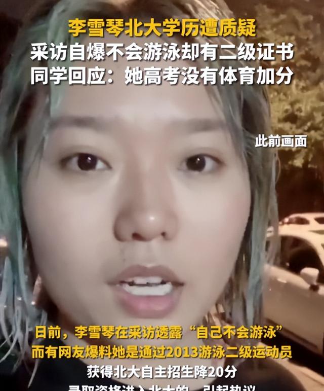 还记得去年有网友爆料说李雪琴凭借游泳二级运动员身份考入北大,但是她在采访的时候却说自己并不会游泳,由此 “北大才女” 的学历真实性遭质疑,被指通过加分进入北大。