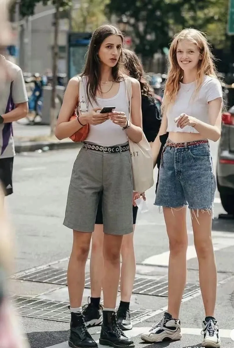 上衣选择一件经典黑白色系的T恤或者背心,舒适又百搭,搭配一条深色系牛仔短裤,清凉简约,再踏上一双平底鞋,消散自己一周的疲惫感~