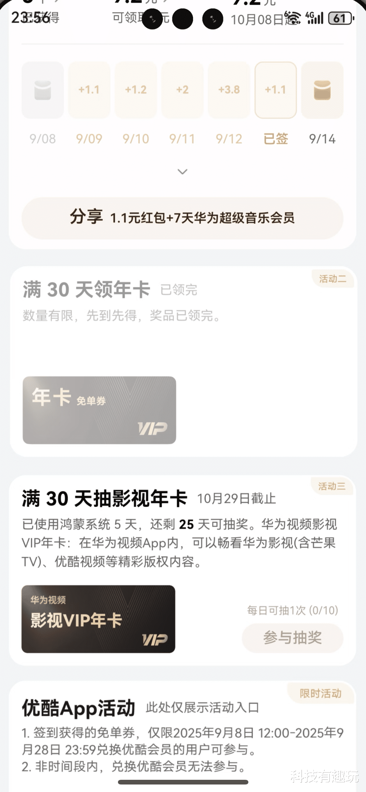 之前,我跟很多朋友一样,每天勤勤恳恳地在手机负一屏签到打卡,领领随机红包和各种会员权益,心里美滋滋地想:这波羊毛薅得真不错。签满了30天后,我以为这个活动就算“毕业”了,没想到,真正的大招还在后头呢!