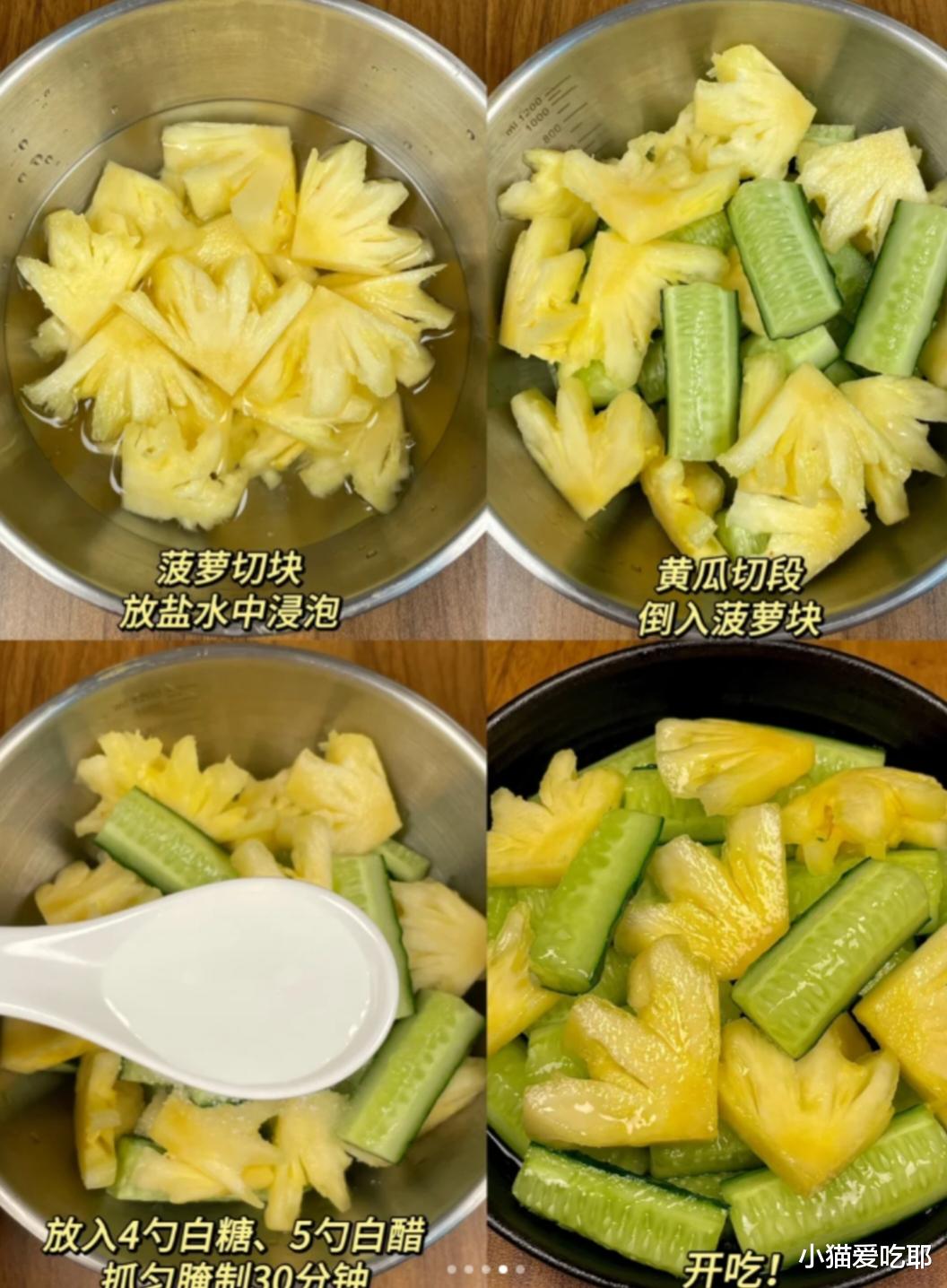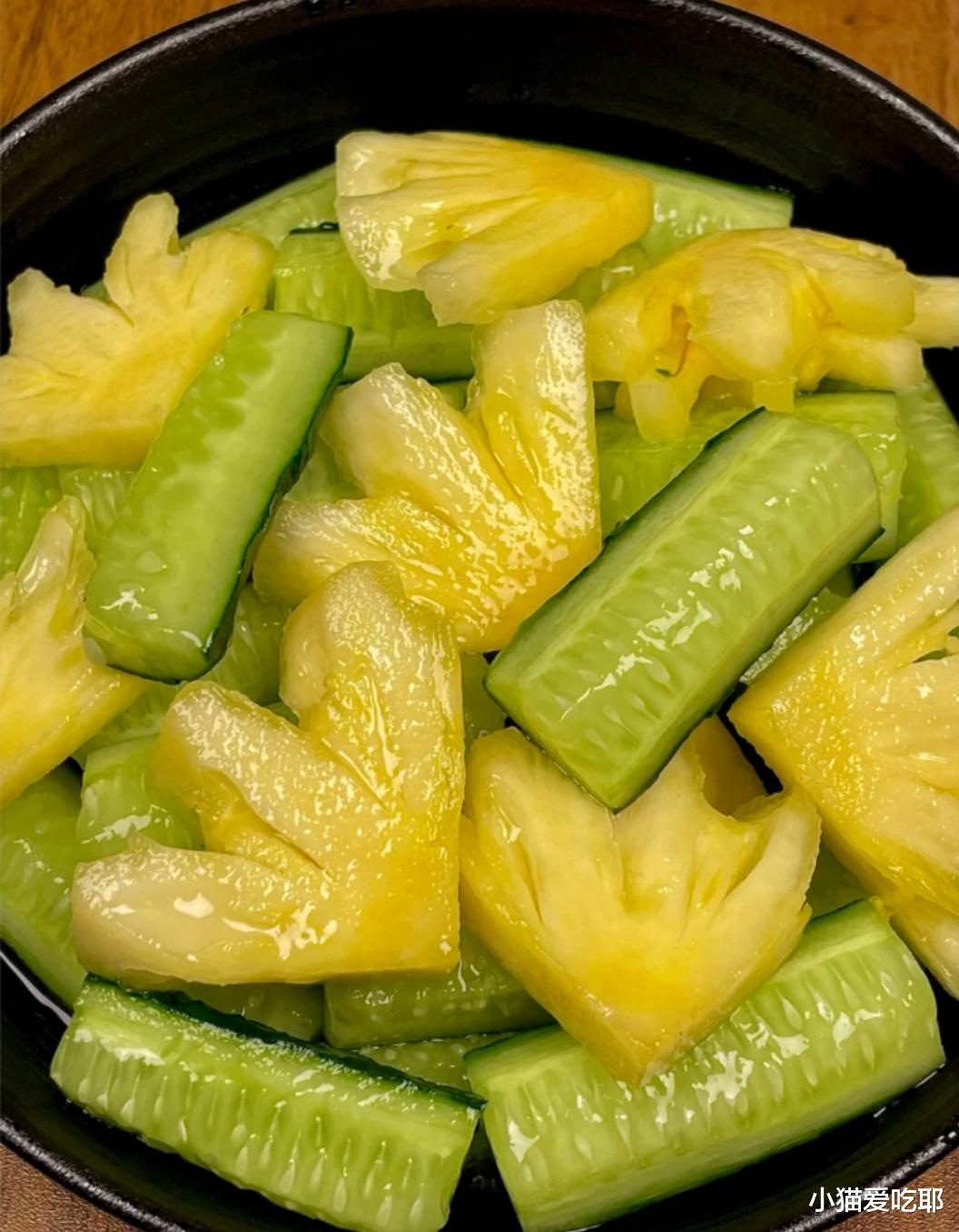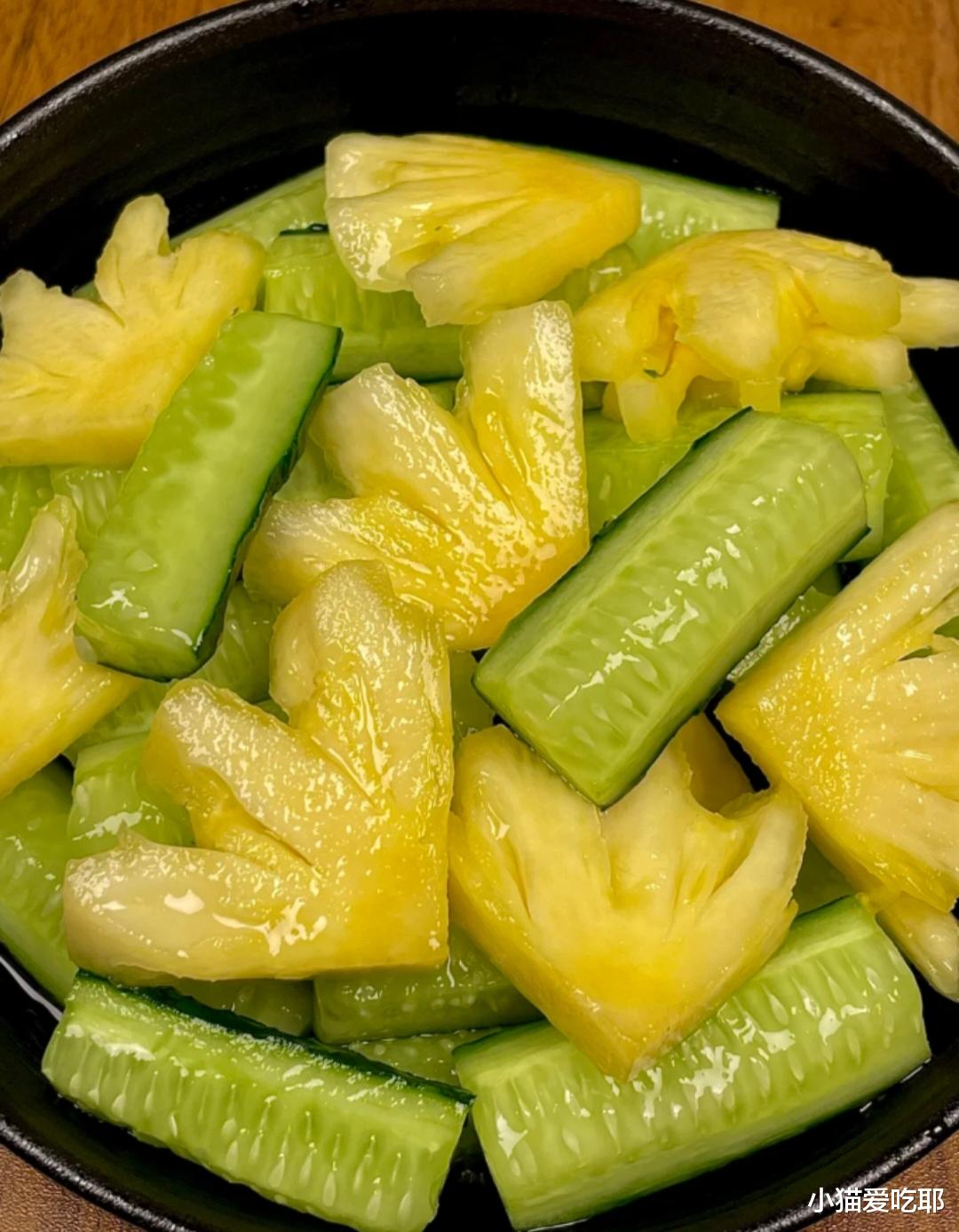 每一口都能体验到菠萝的清甜和黄瓜的爽脆,酸甜的味道交织在一起,完美地解除了夏日的
