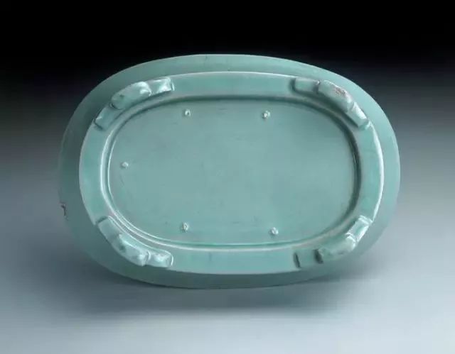 品名:北宋汝窑青瓷水仙盆尺寸:高6.1cm 深3.8cm 口纵15.8cm 口横23.1cm 底纵13cm 底横19.5cm典藏号:故瓷017699原收藏地:养心殿底部支钉:5枚传记:椭圆形盆、侈口、深壁、平底、底足间突出一圈窄边稜、四足、足呈云头形。1936年曾参加伦敦中国艺术国际展览会,编号Porcelain No.26。全器满釉不露胎,仅在器底留下五个支钉痕。目前传世汝窑水仙盆共有五件,一件藏于日本大阪市立东洋陶瓷馆,其他四件都在台北故宫博物院。五件水仙盆中,只有这一件以五支钉,其他四件都是六个支钉烧成。台北故宫馆藏21件汝窑完整介绍之二十汝窑青瓷盘▼