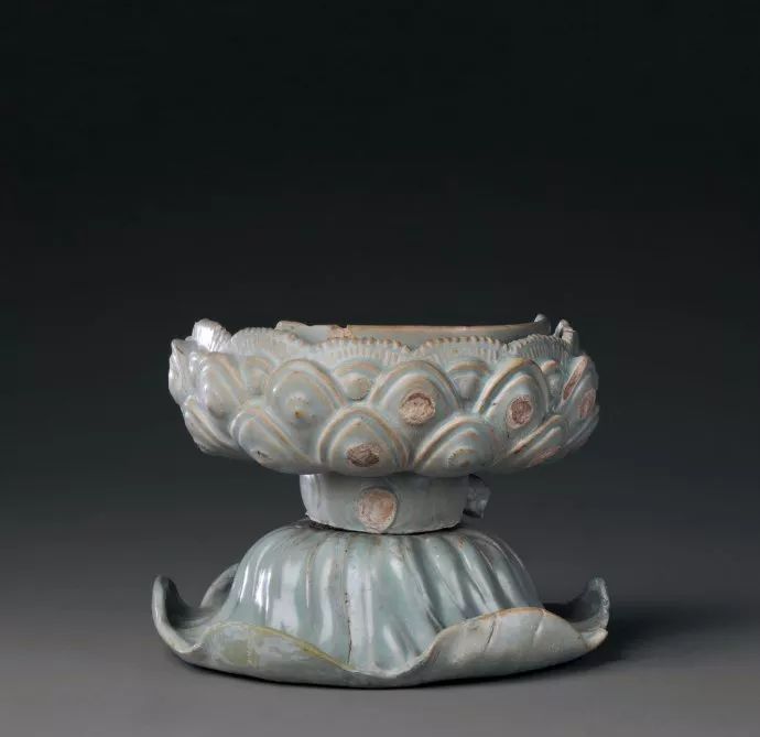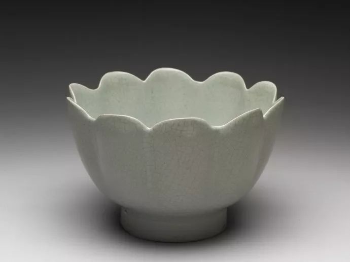 品名:北宋汝窑青瓷莲花式温碗尺寸:高10.1cm-10.5cm 深7.6cm 口径15.9-16.2cm 足径8.1cm典藏号:故瓷016929原收藏地:养心殿底部支钉:5枚传记:十瓣莲花口碗、壁弧且深、上侈下敛、平底、圈足高且足径略大。器底有五细小支钉痕。温碗是盛行于晚唐至宋代的温酒器具,一般来说都和执壶配成一套。这件藏于台北故宫的汝窑青瓷花式温碗,是目前汝窑存世作品中此类器形唯一的一件。台北故宫馆藏21件汝窑完整介绍之四汝窑青瓷水仙盆▼