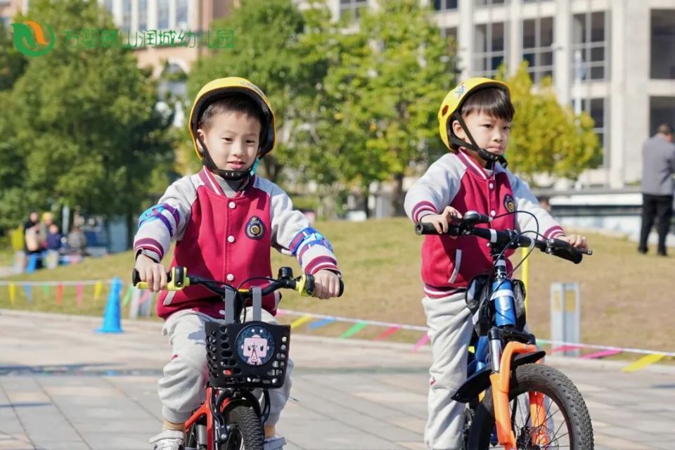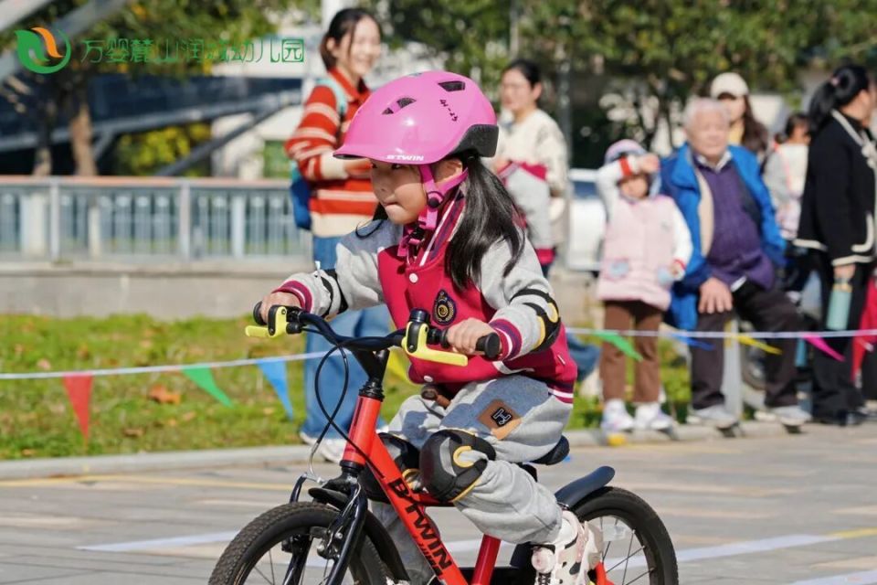 4人一组,佩戴好头盔与护具,小骑手们整装待发!随着出发指令响起,他们沿着设置好的赛道平稳骑行,途中准确识别右转、左转、直行等交通标志,灵活避让障碍,规范通过斑马线。大三班、大二班、大一班、大四班依次登场,小骑手们专注认真,在骑行中践行安全规则,在协作中感受运动快乐,每一张稚嫩的脸上都洋溢着专注与勇敢。