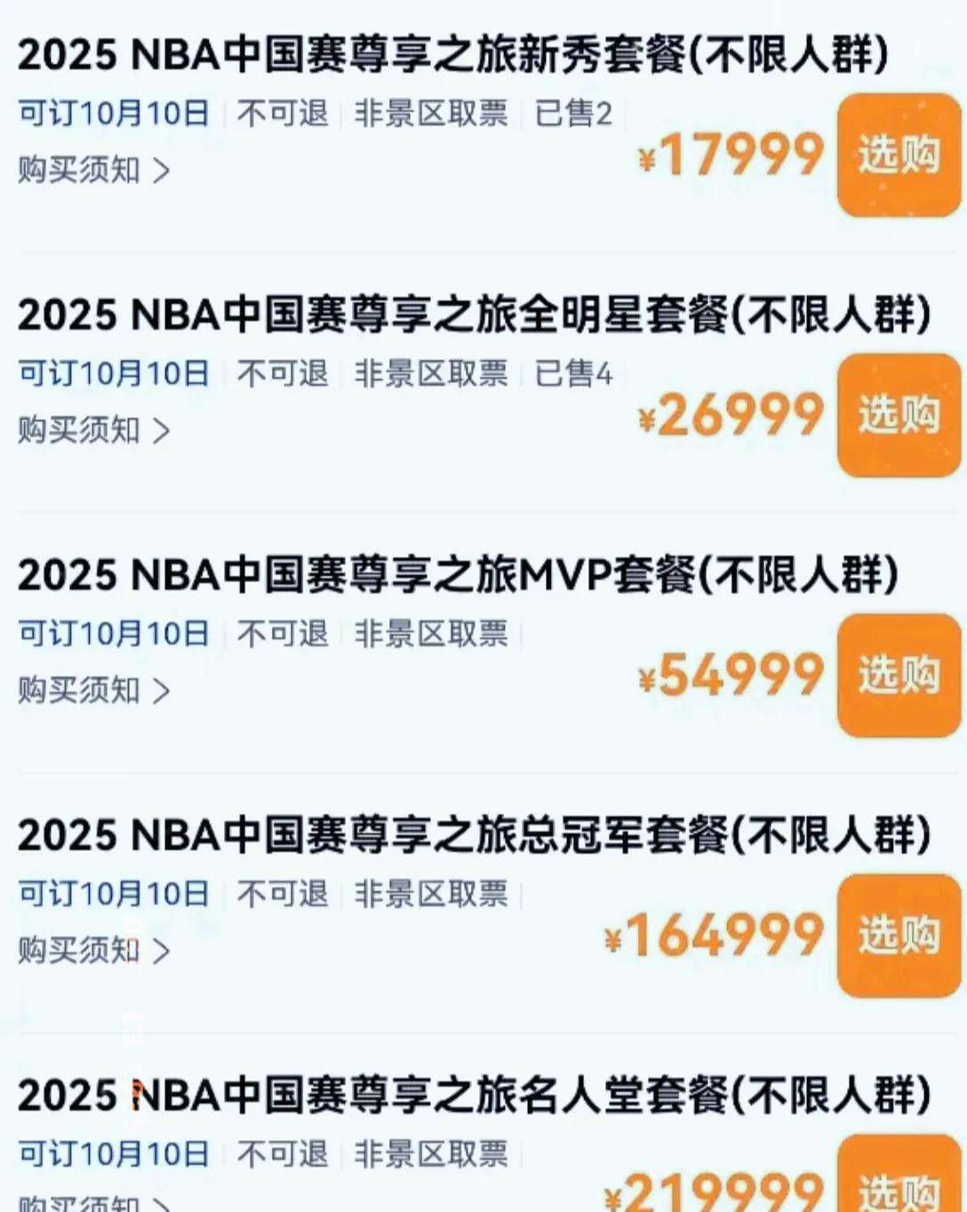 而距离最近的一次NBA中国赛,也就是在19年,当时是湖人与篮网在上海、深圳打比赛,没错,那一次也有篮网,同样,因为詹姆斯的原因,这2场比赛,人气非常高,但最高票价也只有18888元,最低票价只有350元,如果没记错的话,从19年到25年这些年之间,人民币并没有明显的贬值,但票价涨了接近10倍,这是什么概念?只能说明,来中国打球赚钱太容易了。
