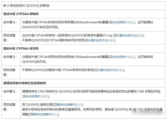 发作性睡病患者。对 daridorexant 或 QUVIVIQ 任何成分有过敏史的患者。已有报道伴有咽部受累的血管性水肿。