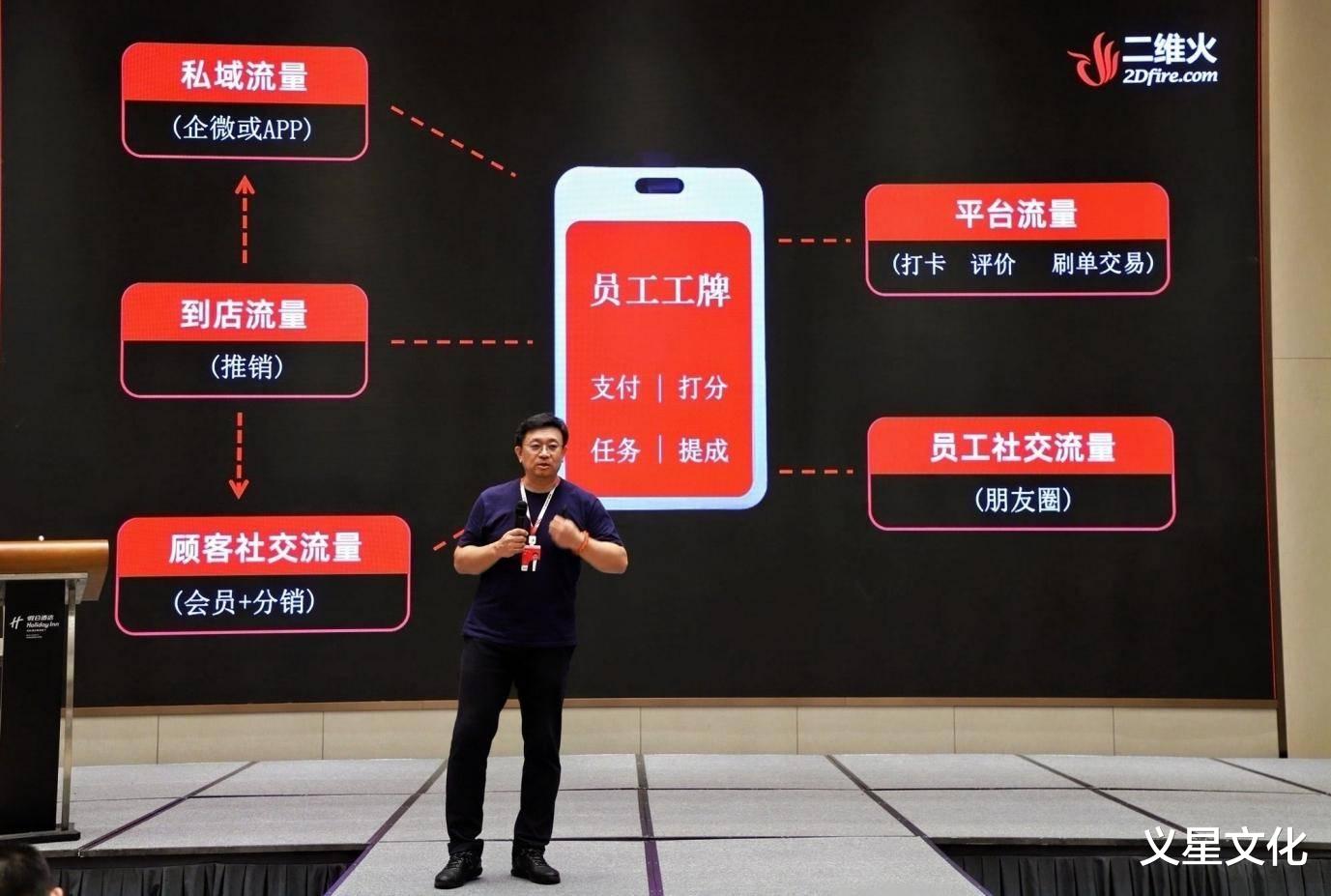二维火科技有限公司合伙人李旻(米老头)在开场演讲中指出:我们将“到店流量,私域流量、平台流量、员工的社交流量、消费者的社交流量”这五大流量通过导购工牌转化并留存,核心是把到店流量引导到私域流量池,商家可以通过自己的企微和APP与消费者进行交流和营销,价值在于将“一次性交易”转化为“终身关系”,而“导购工牌”正是实现这一目标的优质工具。