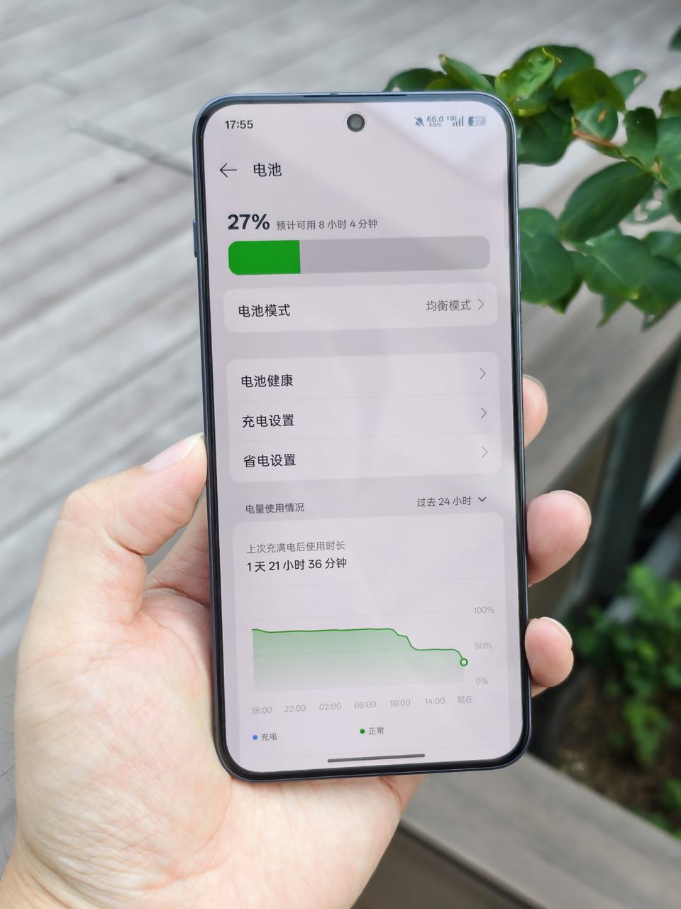 续航强+充电快: 满电出门,白天刷短视频、玩游戏、打电话,下班还能剩 27% 的电。加上 100W 超级快充,半个小时左右就能充满。