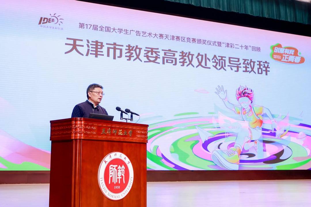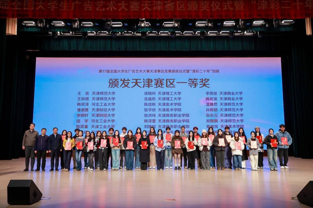 共工新闻社天津讯(记者 孙瑞祥)12月18日,第17届全国大学生广告艺术大赛(以下简称“大广赛”)天津赛区竞赛颁奖仪式暨“津彩二十年”回顾活动在天津师范大学举行。本届天津赛区赛事中,在来自全市44所高校共144个学院的近万组作品中,共评出一等奖69项、二等奖123项、三等奖208项,并推选1389件优秀作品入围全国总评审。在全国总决赛中,天津学子获一等奖6项、二等奖18项、三等奖35项,多所高校荣获“优秀院校”称号,展现出天津高校在广告创意教育领域的雄厚实力。