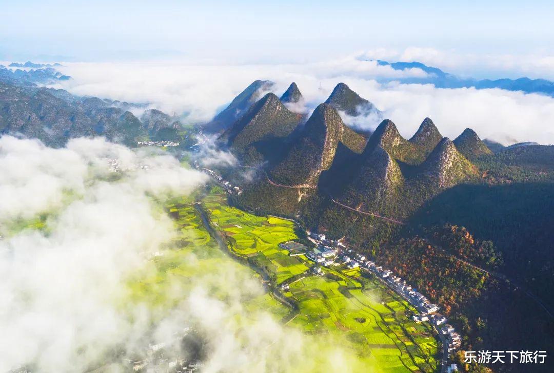 万峰林的美在于天地人和谐共生——春看峰林镶金边(油菜花),秋观稻浪涌峰脚。住在下纳灰村,清晨被布依族舂米声唤醒,推开窗,云雾正从青峰间流淌而过,方知何为“群峰之上,自有生活”。(图片来源:万峰林旅游集团、兴义融媒等)